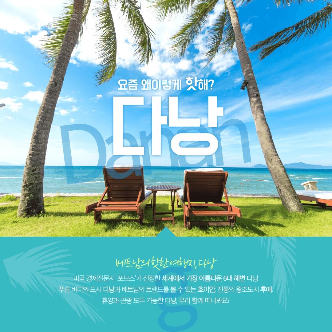그럼 지금부터 베트남 여행을 위해서 몇 군데 추천을 해드리겠습니다. 요즘 핫한 다낭부터 살펴보겠습니다.