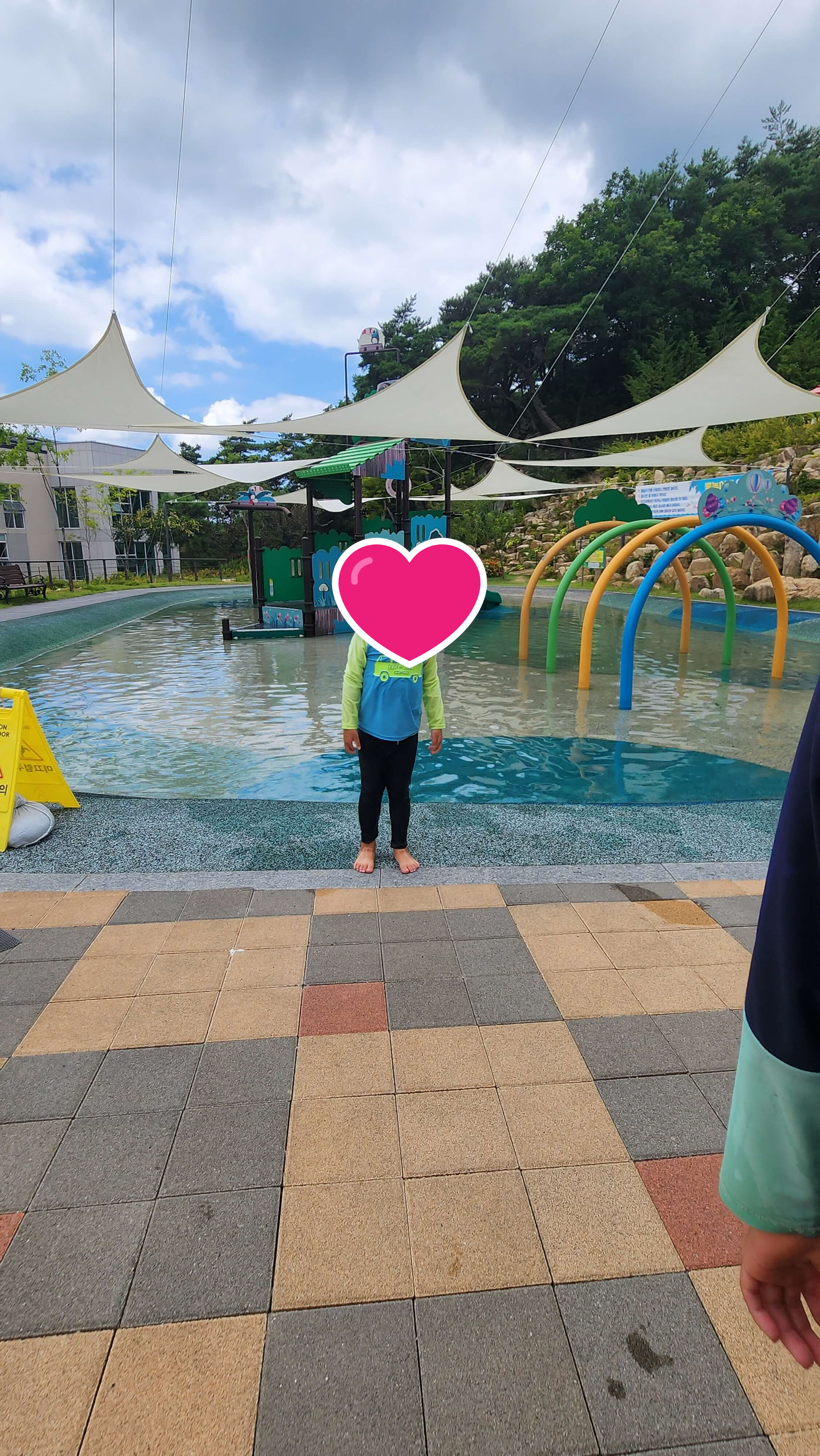 물놀이장의 경우 소박하긴 했지만 아이들은 좋아했어요. 위에서 물 떨어지는 거 있죠? 그것도 계속 떨어지는 게 아니라 점심시간에는 중단하더라고요.