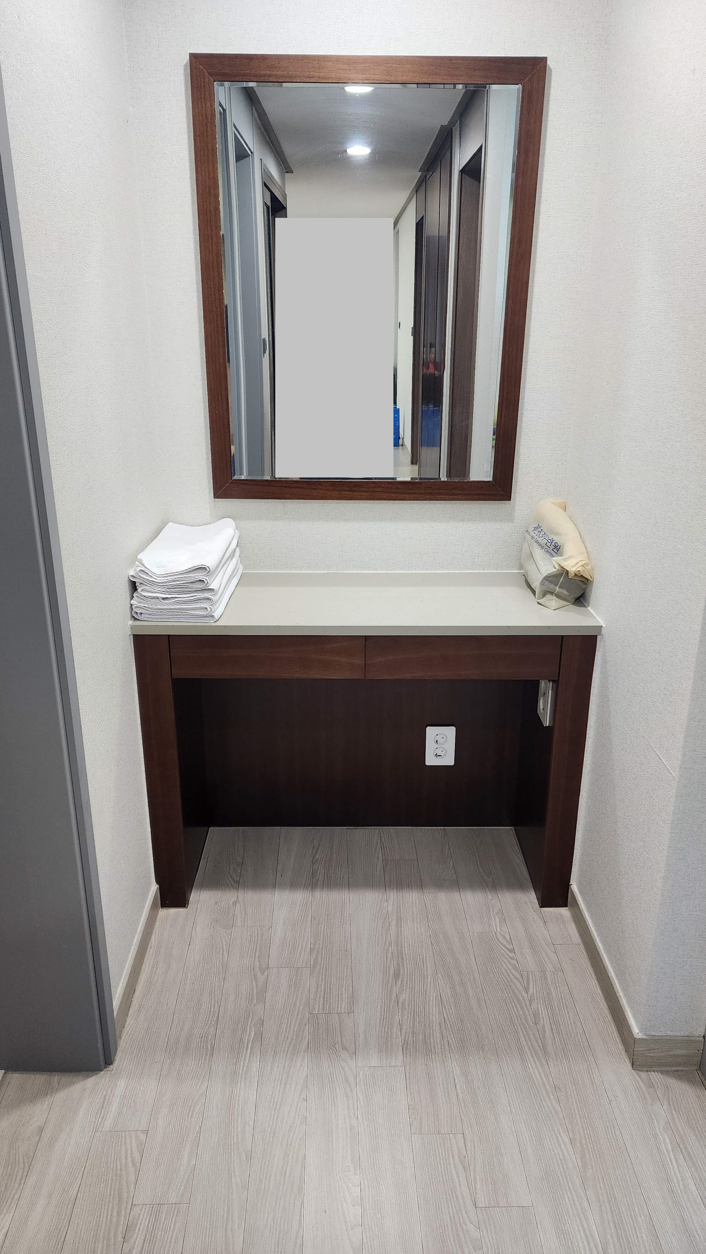 화장실은 샤워실과 화장실이 분리되어 있었어요. 나름 편리한 부분이 있어 5인 대식구가 이용하기에 불편함이 없었어요. 그리고 화장실을 나오면 바로 화장대가 설치되어 있어 머리 말리고 화장품 바르는데 공간으로 활용되었죠.